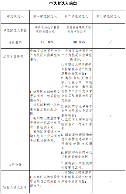 建湘項目房屋結(jié)構(gòu)可靠性檢測服務(wù)單位比選內(nèi)部比選中選候選人公示